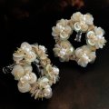 オフホワイトとシャンパンのミックスに薄ゴールドのスパンコールがさり気なく煌めくイヤリング。お洋服の色合いを選ばずに使えるタイプです。モチーフ仕上り 直径 約2.5cmスパンコール(フランス買い付け)他…