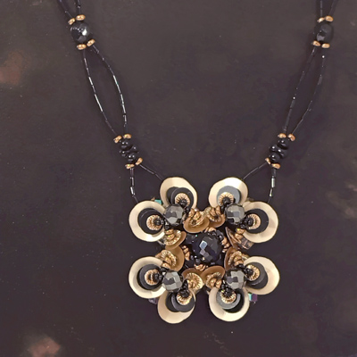 ネックレスキット [N25-T-B] ペンダントタイプのスパンコール系キットが多かったので今回は首元にモチーフが映える少し短めな長さにしました。スパンコールを重ね合わせながら立体感のあるモチーフをテグスで作り首回りはナイロンコートワイヤーで作ります。首元が広く開いたお洋服の時にも程良く存在感のあるネックレスを着けると着やすくなったりしますよね。スパンコールモチーフ 直径 約3cm(最大部分)首回り 約38〜42.5cm(テール使用)スパンコール(フランス買い付け)他 ヘマタイト・ガラスビーズ・メタル金具 ネックレスキット [N25-T-B] 販売価格: 5,940円(税込) 数量: 1 2 3 返品特約に関する重要事項 お問い合わせ 別のアングルから 撮影時の照明や自然光の影響、 お使いのパソコンのディスプレイの違いや照明により 実物と色味や質感に多少の差異がある場合がございますので、ご了承ください。